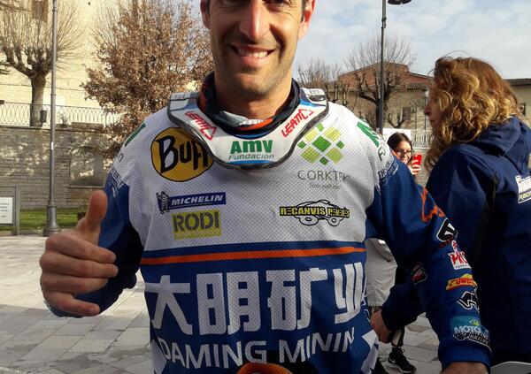 Per l’occasione, nel mezzo sono stati fatti parcheggiare i mezzi dei concorrenti. La voglia di normalità è fortissima, e le autorità locali hanno accolto con entusiasmo la carovana della gara. Addirittura, il Sindaco e l’Assessore allo Sport hanno voluto far visitare il paddock ai ragazzi della Scuola; poi tutti sotto la tensostruttura, sempre pronta per le emergenze, per un incontro con i piloti e gli esponenti della Federazione: Antonio Assirelli, il coordinatore della specialità, li ha così edotti ai meccanismi della disciplina; una disciplina sempre molto legata ad i territori che attraversa, ed ai quali deve con grande riconoscenza il suo successo. Un bel segnale di sostegno e vicinanza a queste sfortunate popolazioni. A capo dell’organizzazione, quel gran personaggio che è Gianluca Tassi con la collaborazione del MC Umbria. Gianluca ha alle spalle una storia eccezionale. Da giovanissimo il Motocross, dove raccoglie i primi risultati, poi nel Motorally degli anni ’80: una carriera ricca di successi, con ben 16 Campionati Italiani ed un Europeo nel palmarès.