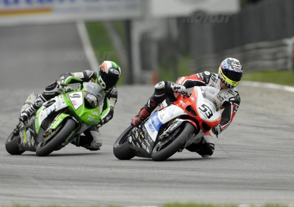 Fermata al quarto giro dalla direzione gara a causa dell’arrivo di una timida pioggia, la Superbike è ripartita dopo pochi minuti e ha visto grandi protagonisti, sull’asfalto di nuovo asciutto, il marchigiano Alessandro Polita del Barni Racing Team (Ducati n. 53) e l’umbro Danilo Petrucci del Team Pedercini (Kawasaki n. 9). Bravi ad andare in fuga ad inizio gara sul resto della compagnia, si sono giocati la vittoria fino all’ultimo giro. Ad avere la meglio, con un fantastico 1’45”565 fatto segnare alla penultima tornata, è stato Polita, che nelle fasi finali è riuscito a staccare recuperare a Petrucci quei decimi preziosi utili per la vittoria.
