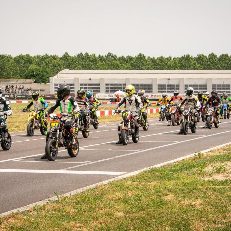 Griglia unita anche per la Minimotard e la Pitbike Over, la prima casella dello schieramento è di Miranda Festoso del team Fuorigiri conquistata con il tempo di 1'.08''.124''', in sella ad una Yamaha 2T Minimotard, mentre per la Pitbike primo dello schieramento è Fiorentino De Maio del team Squadra Corse41 con il tempo di 1'.10''.783''' che scatta dalla quinta posizione. Partenza perfetta per Fabio Ciancaleoni che si mette subito in prima posizione. Festoso si incolla alle sue spalle e i due fuggono subito rispetto a tutto il gruppo. Lotta anche per la terza posizione fra Gennaro Pagano del team Consorzio Moderno e Marco Di Iorio del team Squadra Corse41, tutti i primi quattro posti della gara per la categoria Minimotard. Primo invece della categoria Pitbike Over è Fiorentino De Maio che segue indisturbato in quarta posizione. Festoso si rimette leader del gruppo e riesce anche a staccare Ciancaleoni in seconda posizione ormai solitario. Bagarre accesissima per la seconda posizione della Pitbike Over con Lorenzo Trapè del team MotoClub DN Racing ASD ed Alessandro Tortorella, Wild Card, del team NIBA Racing che tenta in tutti i modi di ottenere la posizione. Vicinissimi fino alla fine i due scaldano l'atmosfera della gara, girano affiancati diverse curve dell'ultimo giro con il cronometro che decreterà la sesta posizione a Trapè per 0''.260''' che gli vale la seconda di categoria. Vince Festoso che racconta: “Il weekend non è partito molto bene, ma ci siamo rifatti già partendo dalla prima posizione. La partenza non è stata delle migliori e Fabio mi ha imbucato, ho usato due o tre giri per studiarlo e capire in quale punto della pista passarlo. Quando sono stata decisa sono riuscita a mettere le ruote davanti, ho utilizzato qualche altro giro per formare un distacco poi da lì ho condotto con il mio ritmo”. De Maio conquista la vittoria per la categoria Pitbike Over ed afferma: “Fa abbastanza caldo, non volevo stressare il motore ed ho cercato di trattenermi. Controllavo dietro con la coda dell'occhio vedevo erano sempre lì ed ho amministrato. Ieri il weekend è iniziato molto male, un problema con tre moto che dovevo sistemare io e sono arrivato molto stressato. Ma adesso la gara è iniziata bene speriamo di continuare così!”. RISULTATI GARA1 1.Miranda Festoso(Minimotard) 2.Fabio Ciancaleoni(Minimotard) 3.Marco Di Iorio(Minimotard) 4.Gennaro Pagano(Minimotard) 5.Fiorentino De Maio 6.Leonardo Trapè 7.Alessandro Tortorella 8.Pierluigi David 9.Danilo Raggioli 10.Yari Branco 11.Luigi Camino 12.Salvatore Ravagnoli 13.Antonio D'Avola