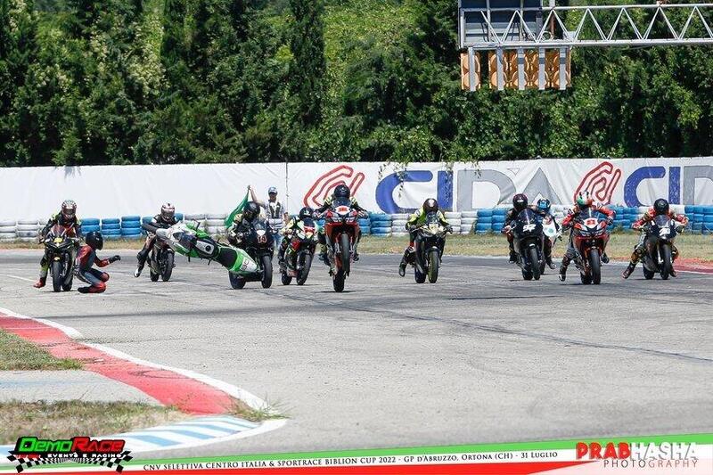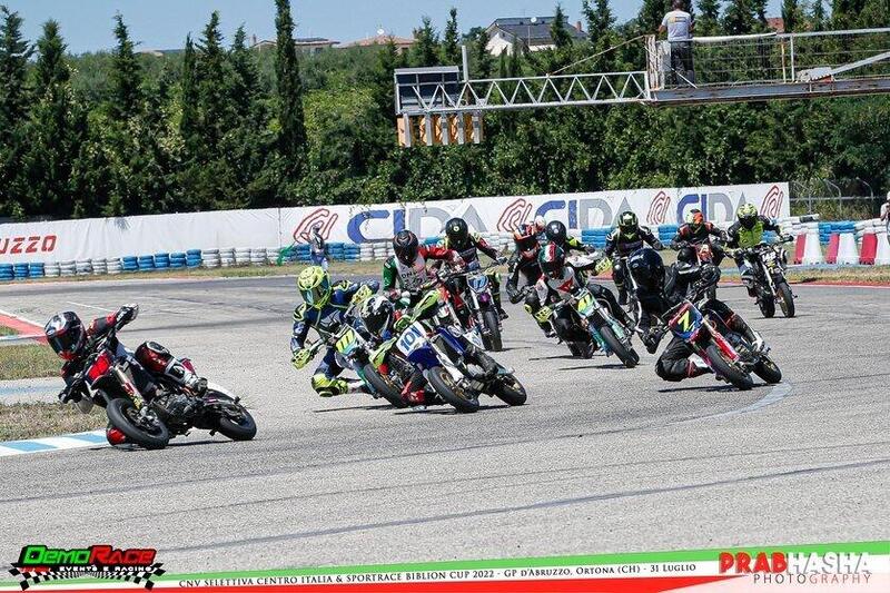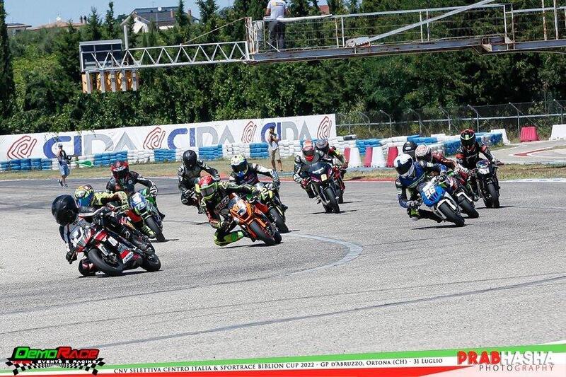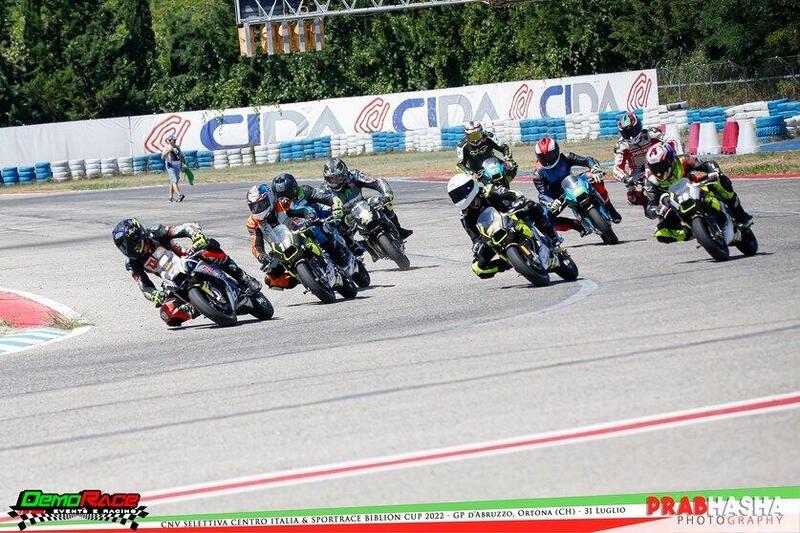 I primi a scendere in pista i piloti della Sportrace con in pole position Danilo Paoloni del Team Birba, che ha fatto registrare il tempo di 1'.05''.416''' in qualifica effettuate il sabato come da programma riservato a questa categoria. Una carambola in partenza coinvolge tre piloti: Cristian Maiorani del Mandatori Racing Team perde il controllo della moto che gli si impenna proprio allo spegnimento del semaforo e viene travolto da Domenico Mariotti del team Scuola Motociclismo Pescara e Massimo Migani del team MC Racing fortunatamente senza conseguenze. La direzione gara opta per una bandiera rossa che provoca quindi una seconda partenza nella quale si verifica un altro colpo di scena con Francesco Guiducci del team MC Racing che rimane fermo al via senza conseguenze e riesce a ripartire solo più attardato. Paoloni mantiene subito la leadership della gara con Nicholas Pighin del team MC Racing che lo segue, ma nel corso del secondo giro Giovanni Galloni del Team Birba riprende la seconda posizione. Le prime tre posizioni si consolidano fin dai primi giri, mentre la quarta posizione sembra l'unica incerta: contesa fra Nicolò Cristiano del team Milano Racing e Carmine Ruotolo del team GCR Racing. Nonostante la lotta fra i due, Cristiano mantiene la posizione riprendendola anche di forza e mantenendola fino alla bandiera a scacchi. Vince Paoloni che a fine gara commenta: “La pista era molto buona, la gara è stata un po' più monotona con un livello più basso rispetto alla scorsa gara. La moto va molto bene, spero di fare lo stesso in Gara2. Vorrei però fare le condoglianze alla famiglia che ha avuto quel grave lutto”. Per la classe Moto 17 Promo 300 è invece Pighin a conquistare la vittoria ed afferma: “E' stata una gara calda, è difficile gestire le temperature del motore e delle gomme. Ho fatto un'ottima partenza, strano perché di solito non mi vengono ma questa MCR mi da una mano a partire bene. Ho sbagliato la prima curva in realtà, ho mancato proprio la traiettoria e questo ha permesso al pilota dietro di me di passarmi. Sono molto contento e molto fiducioso di quello che stiamo facendo insieme alla GCT Motorcycle ed alla MC Racing perché stiamo portando avanti uno sviluppo. Questo che vedete oggi sarà parte della moto del 2023. Siamo già ad un passo gara e passo di qualifica molto buono, sono al settimo cielo e sentivo Paoloni che diceva si è un po' annoiato punto ad arrivare lì il prossimo anno!”. RISULTATI GARA1 1.Danilo Paoloni 2.Giovanni Maria Galloni 3.Nicholas Pighin(PR3) 4.Nicolò Cristiano 5.Carmine Ruotolo 6.Domenico Mariotti(PR3) 7.Matteo Marini(PR3) 8.Matteo Fratta(RF) 9.Francesco Guiducci 10.Cristian Maiorani 11.Massimo Migani 12.Enzo Guarino (RF)