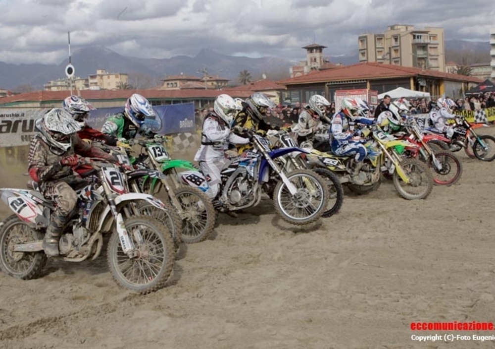 Nella cornice di allegria che il Carnevale di Viareggio trasportava nell’aria, si è svolta la prima Coppa Europa Beach Cross. La giornata assolata ha favorito l’arrivo del numeroso pubblico sulla spiaggia antistante gli stabilimenti balneari Principe di Piemonte, Imperia e Bagno Lido. Un quadro insolito per il motocross delle grandi occasioni, che ha promosso a pieni voti questa manifestazione sperimentale nata da un’idea di FX Action e sposata appieno dalla U.E.M.