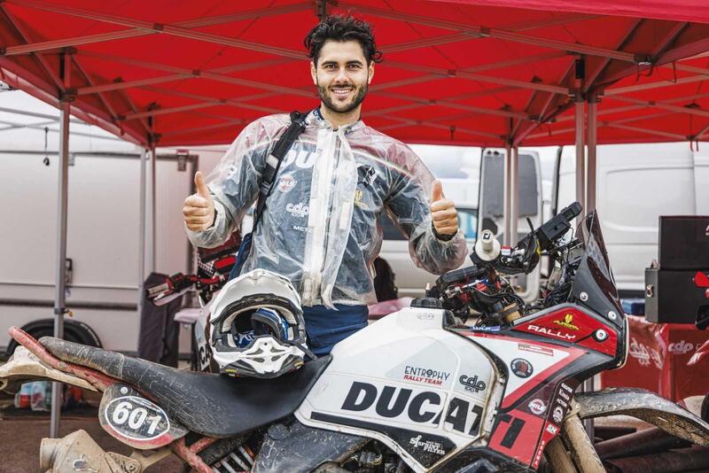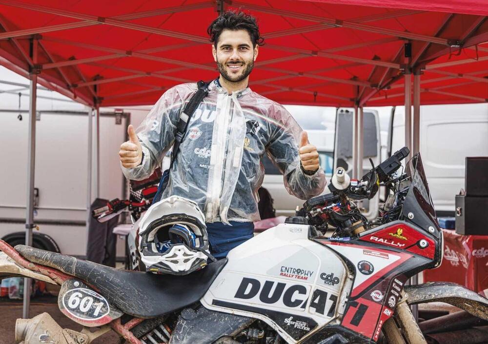 Faccio 1 + 1 e capisco che si parla della Ducati. A stagione iniziata mi arriva una semplice chiamata, ma sicuramente una delle più importanti, che pian piano inizia a concretizzarsi con uno dei sogni più belli. Prende il via per me l’avventura in sella alla Ducati Desert x Rally con la squadra ufficiale del team CDP-Entrophy rally Ducati che quest’anno mi ha schierato al fianco del pluricampione del mondo enduro Antonie Meo. Lui nella categoria G-1000, io riconfermato nella categoria GPX.
