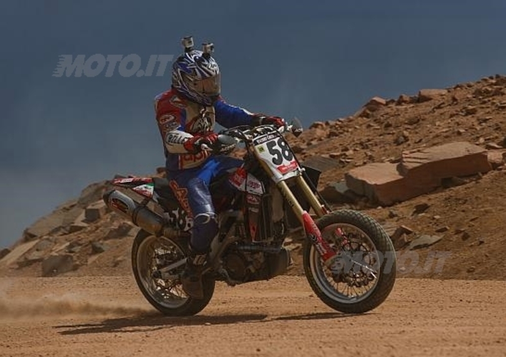 Aprilia SXV 5.5, la supermotard bicilindrica che ha rivoluzionato il mondo dell'off road, ha sbaragliato tutti i concorrenti trionfando per il secondo anno consecutivo nella mitica Pikes Peak International Hill Climb.