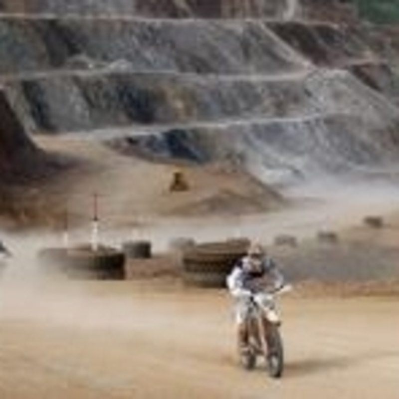 Ore 10:30 iniziano le operazioni di posizionamento in griglia, bisogna muoversi. Butto dentro le ultime cose nello zainetto, carico il camel back talmente tanto che sembra un gavettone, ed inforco la mia Husaberg col numero 124. Mentre scendo verso la parte più profonda della cava chiedo umilmente perdono in anticipo alla mia moto, perché ho la sensazione che verrà un “pochino” maltrattata. Nella spianata di fondo, ci organizzano in file a seconda dei numeri sulle moto: nella prima fila dall'1 al 50 ovvero i primi 50 classificati del prologo, nella seconda dal 51 al 100 e così via. Io sono in terza fila, mi posiziono parecchio all’interno per girare al palo, o meglio, alla lattina gigante di Redbull, ma sono dentro una pozza gigante. Tra i mille pensieri che mi corrono nella testa questo non è certo quello che mi preoccupa di più.
