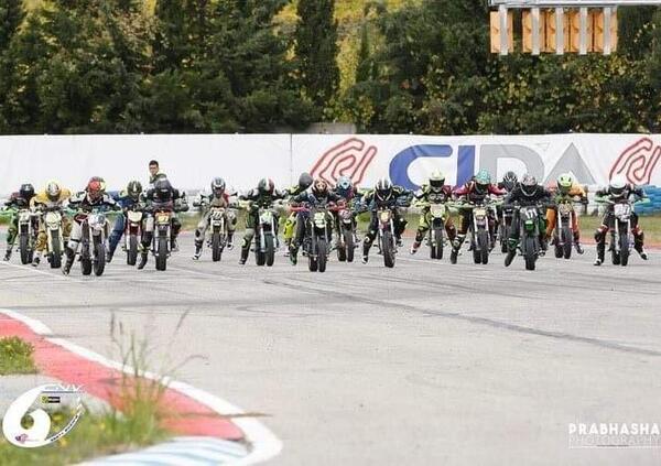 Chiudiamo con la SUPERMOTO dove il pole man è Matteo Dolfini con il tempo di 1’04"403. In Gara1 Matteo Dolfin del team LM Motorsport prende la prima posizione seguito molto vicino da Francesco Batelli del team Cast16corse e Romano. Tutti e tre rimangono molto vicini in lotta per il podio. Una tripla caduta che coinvolge Casadio Flavio del team AC Racing, Orlandi Gianpaolo e Francesco Mandala, entrambi del team Evolution Bike, causa la bandiera rossa e quindi lo stop della gara. Nella ripartenza è Romano a prendere la testa del gruppo, secondo da Dolfin. I primi due fuggono dal resto del gruppo. Romano riesce a mettere al sicuro la prima posizione, a causa di una scivolata di Dolfin è seguito con molto margine da Orlandi e Betelli in terza posizione.