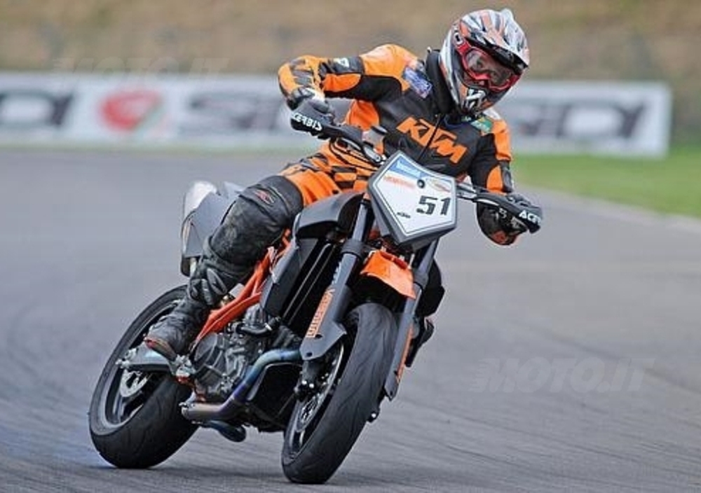 Conclusione 2: sotto la tenda del Team ha preso il via il progetto di partecipazione di Pierluigi Valentini alla sperimentale classe Maximoto. Il pilota toscano ha schierato al via una KTM 950 SM R allestita da KTM Italia. Diciamo subito che la categoria non è regolamentata in modo omogeneo, poichè include moto di tipologie anche molto diverse ma, in attesa di una eventuale miglore definizione, rallegriamoci del fatto che Valentini si è sbarazzato facilmente della concorrenza "diretta".