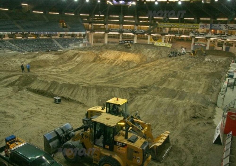 Il mago della ruspa Armando Dazzi ha preparato la pista che ospiterà la spettacolare gara di sabato 28 al Palasport