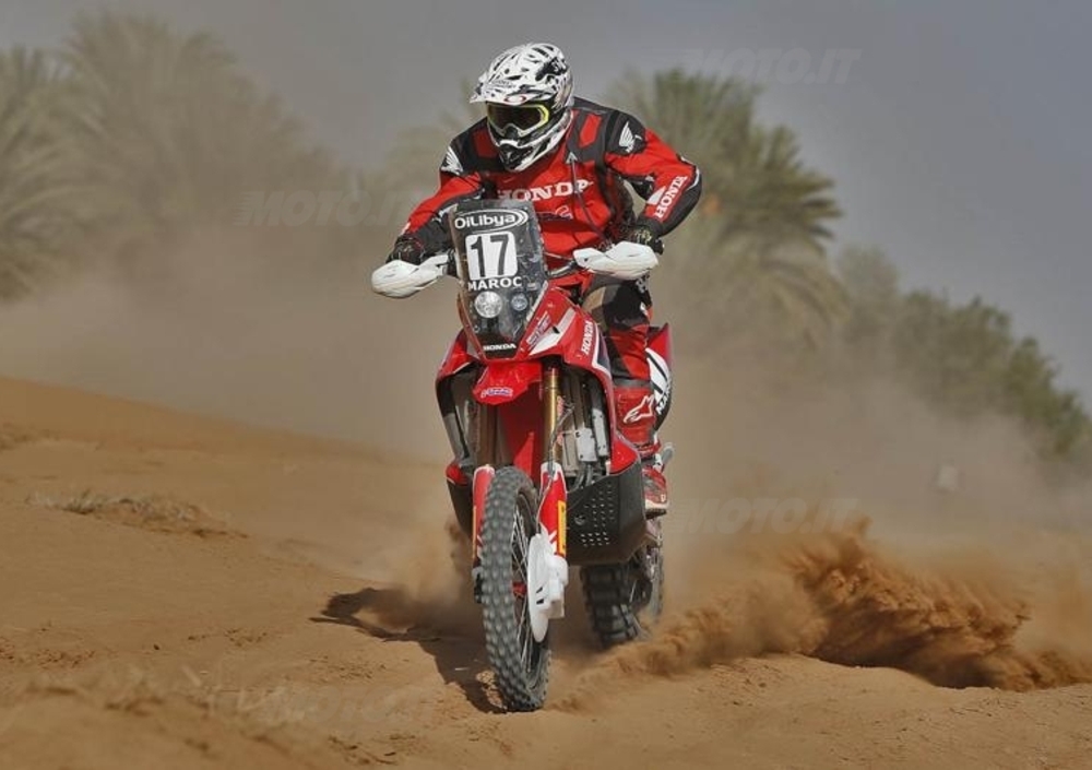 Francisco “Chaleco” Lopez.«Una giornata molto proficua. Intanto il risultato. Un terzo posto è sempre una buona sensazione. Poi, finalmente una tappa senza alcun problema. Arcarons ci ha aiutato molto rileggendo con noi il road book, e continua a esortarci a fare attenzione alle piste del Marocco. Lui le conosce bene, è un’autorità in materia. Infine ci ricorda quale è la nostra “mission”, tra meno di tre mesi. Ho tenuto un ritmo non elevatissimo ma costante, ho navigato bene e non ho commesso errori. Le nostre moto “pagano” qualcosa in termini di velocità pura rispetto alle ultime versioni delle ufficiali, ma i nostri meccanici fanno un gran lavoro e riescono a colmare, almeno in parte, il gap. Una buona giornata, insomma».