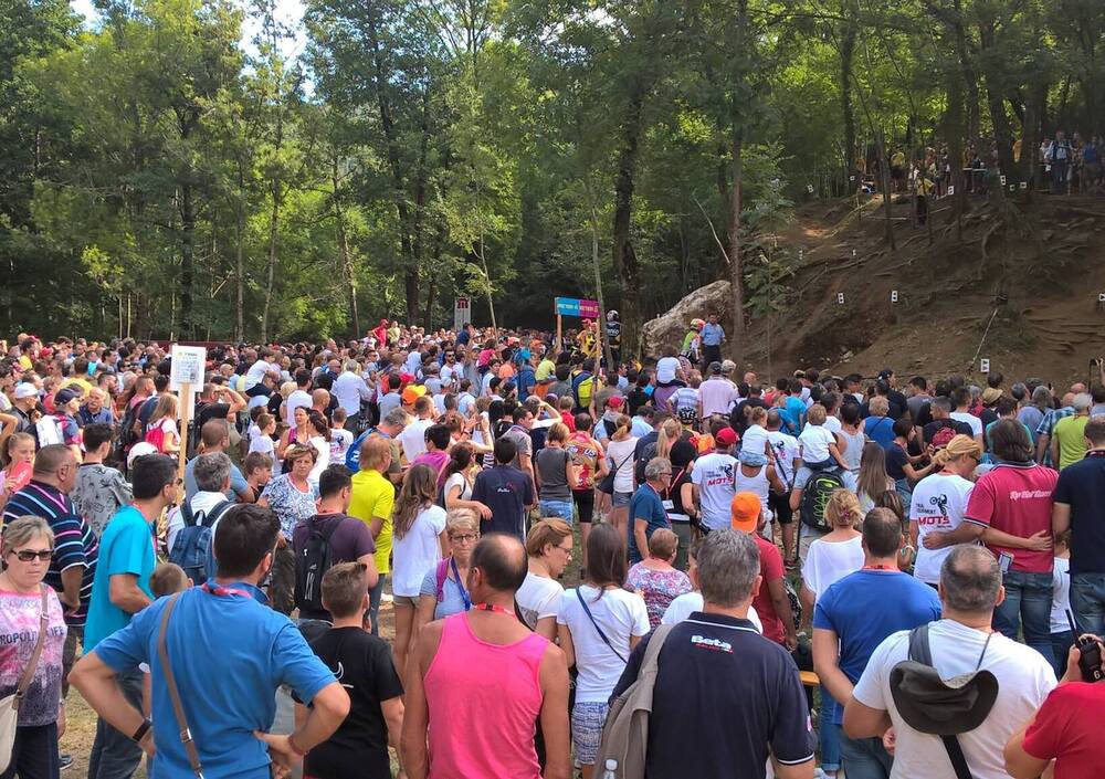 La perfetta organizzazione del Moto Club, si è poi palesata nella gestione logistica dell’evento che ha coinvolto tutte le associazioni territoriali ed ha permesso di mettere in campo un esercito di 500 volontari, dislocati strategicamente sul percorso per garantire la massima sicurezza ed una buona riuscita dell’evento che si è poi palesata con una risposta massiccia del pubblico, si parla di 26mila biglietti venduti nei due giorni e presente sin dalle prime ore del mattino. Ma veniamo alla gara che ha visto due protagonisti, il pubblico giunto numerosissimo come non si assisteva da anni e Toni Bou che sul tecnico percorso disegnato sull’insidiosissimo terreno delle cave di Merzo, ha letteralmente annichilito gli avversari facendo gara a sé fin dal sabato grazie a passaggi a zero in sezioni controllate per gli altri impossibili.