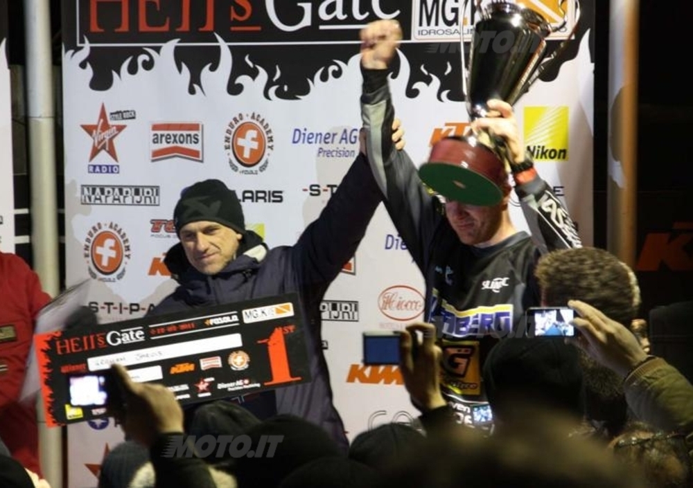 Ancora una volta l'Hell's Peak - la micidiale salita che sancisce la fine della gara - si è parata di fronte ai due inglesi. La folla ad attenderli, il cuore che batte a mille per tutti. Le luci dell'Hell's Peak diventano di colpo la magia dell'enduro estremo.