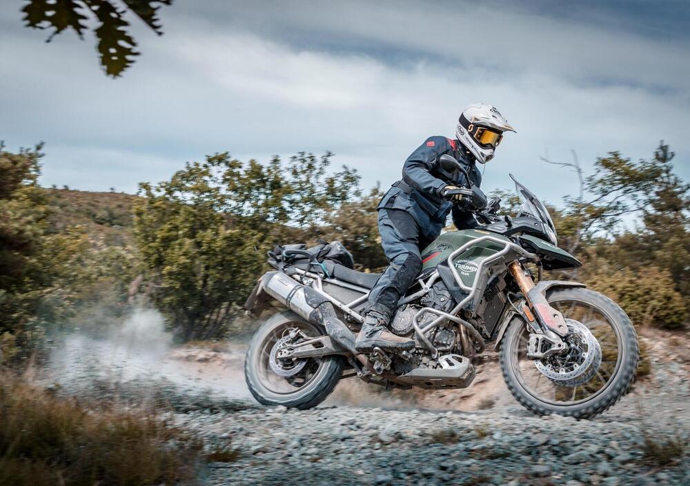 Abbiamo guidato la Tiger 900 Rally con la mappa offroad personalizzata: traction disinserito, riposta sport del motore da 95 cavalli e ABS disattivato dietro. Il tre cilindri si è comportato in modo esemplare in fuoristrada. Ha infatti un'erogazione piena, ma non conosce gli strappi. Anche nell'impestato più ripido si arrampica come uno stambecco e ci ha stupito la gentilezza che riserva alla gomma posteriore. Dopo tutti questi chilometri a buon ritmo su sassi e pietre aguzze, la Scorpion Rally non aveva segni di strappo o usura eccessiva. La Rally 900 ci ha poi coccolati sulla via del ritorno, la domenica con oltre 34° indicati dal quadro TFT. Oltre i 30 gradi il motore scalda nella zona delle ginocchia - ma con queste temperature agostane quale non lo fa? - mentre cruise control, sella super imbottita e vibrazioni ridotte regalano trasferte da granturismo.