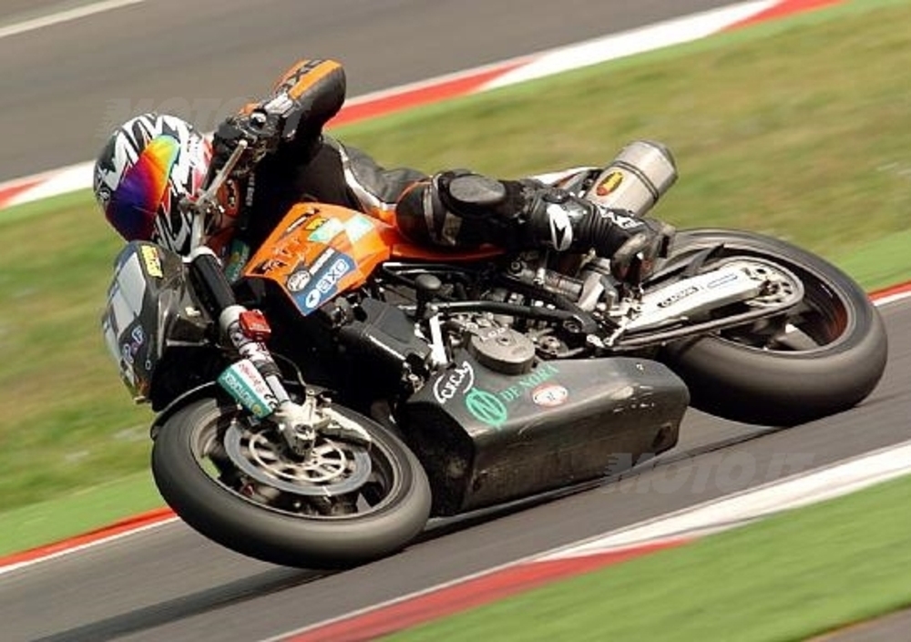 Vanno forte... eccome... Partenza razzo per Andrea Padovani, seguito da Cordara, Valentini e poi una pattuglia di assatanati composta da Tomassoni, Zeni, Ferrari, Carnaghi. Anche se i tempi non scendono rispetto alle prove (la mattina presto il grip non è eccellente in pista) lo spettacolo non manca! Ci pensa Stefano Cordara a rompere gli indugi già al terzo giro, con un sorpasso che fa seguito a una staccata tiratissima. La mossa non coglie impreparato Padovani, che replica alla curva successiva con un ri-passaggio all'interno. Da quel momento in avanti, scatta un duello da antologia durato fino alla bandiera a scacchi. I due colleghi-rivali si scambiano più volte la posizione e alla fine è Cordara ad avere la meglio, con la sua Super Duke numero 90. Sale sul podio anche Sauro Valentini, terzo, che si è goduto lo spettacolo offerto dai protagonisti a poca distanza, pronto ad approfittare di ogni possibile errore dei due.