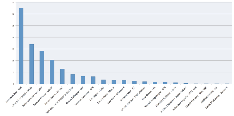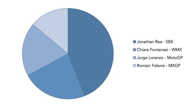 Seconda in classifica con il 17% dei voti c'è una ragazza, la nostra campionessa del fuoristrada: Kiara Fontanesi che ha conquistato il suo quarto titolo mondiale consecutivo nel Mondiale Femminile MX. Al terzo posto Jorge Lorenzo. Dopo un finale di stagione così ricco di polemiche non sorprende che il piota spagnolo non risulti il più cristallino dei campioni 2015, ma il 14% lo ritiene comunque il migliore della passata stagione sportiva.