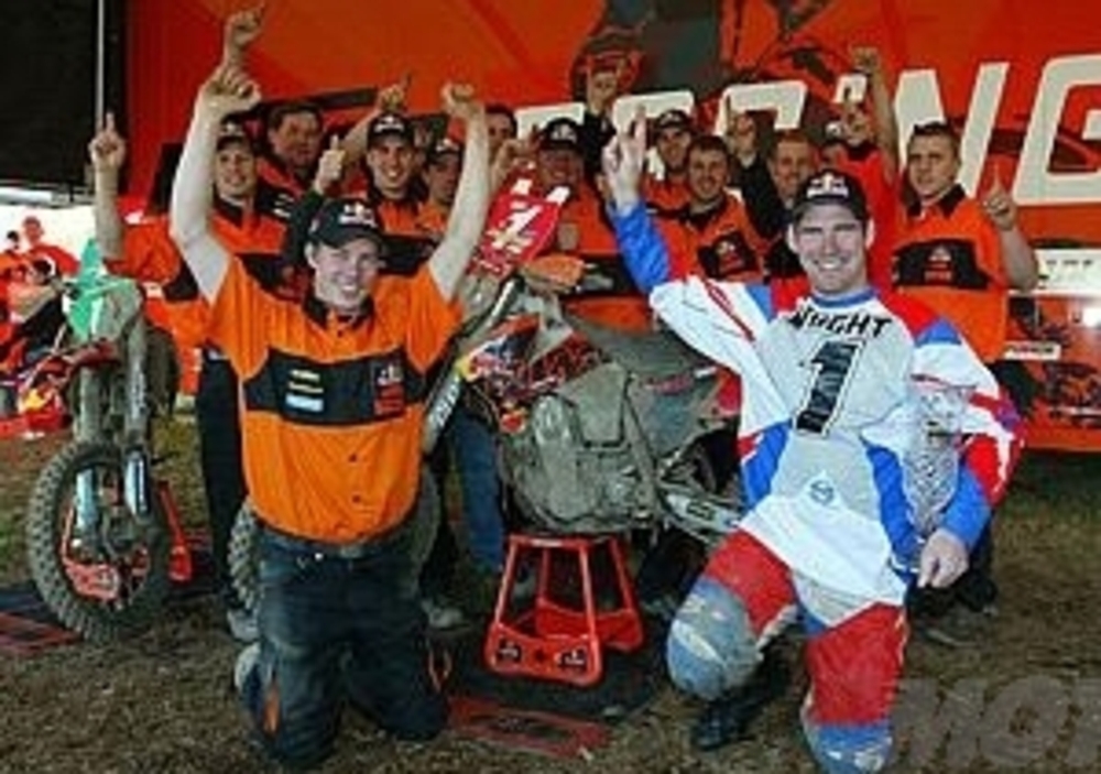 "E' fantastico aver vinto il campionato. E' stato un campionato lungo e difficile, c'ho messo un po' a mostrare il mio reale potenziale, ma ho raggiunto il mio obiettivo finale, vincere il GNCC. Devo dire grazie, grazie di cuore a tutto il Team Ktm, in special modo al mio meccanico Timo che mi ha accompagnato nelle ultime 4 gare" ha detto Knight.