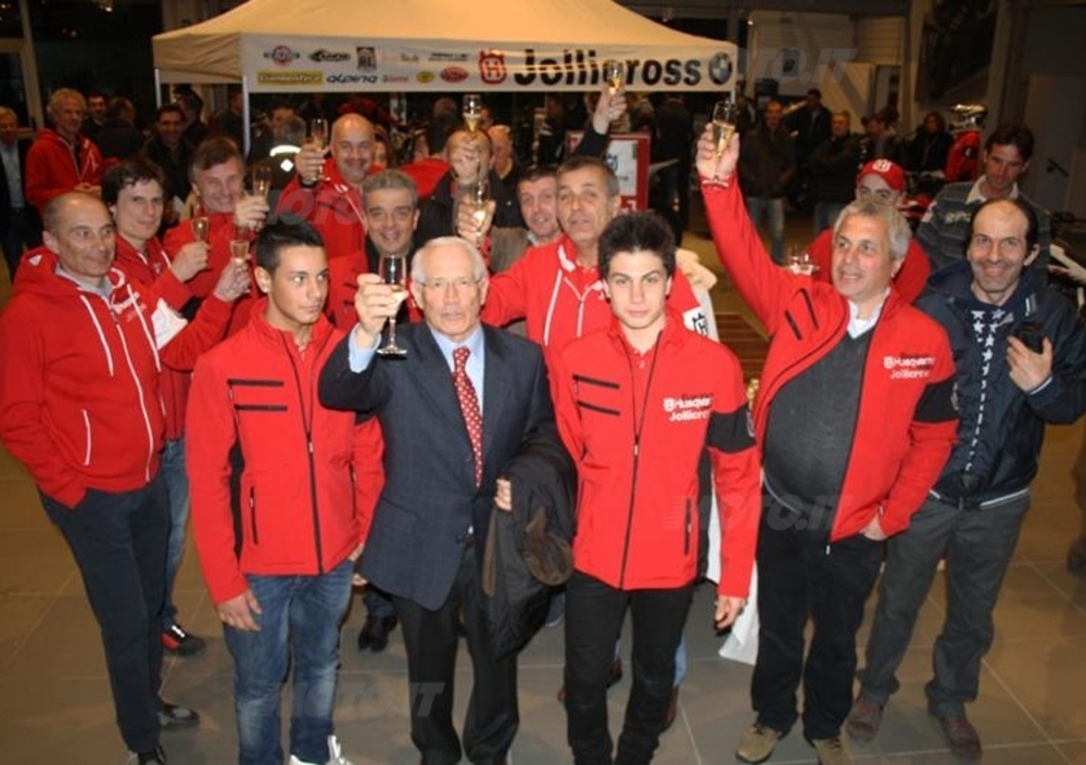 A fare da ospite d'onore al taglio del nastro del team agonistico Jollicross è stato Klaus Allisat, gran capo tedesco inviato a Biandronno dai vertici Bmw Motorrad a presiedere Husqvarna nel mondo. Da lui, dal direttore commerciale Italia Massimiliano Mucchietto, dal supertecnico Paolo Brovedani e dal responsabile competizioni-stampa, Martino Bianchi, gli auguri e il più sportivo in bocca al lupo. Complimenti beneaugurali anche dai degli Enti locali, l’Assessore allo Sport Giuseppe De-Bernardi Martignoni, dai vertici Federmoto Ivan Bidorini e Alessandro Lovati e dal carismatico delegato provinciale Ivanoe Belletti.