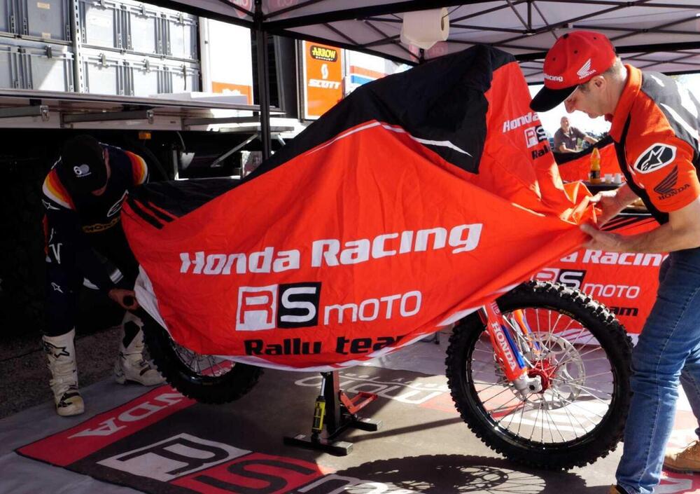 Tre bellissime Honda CRF 450 RX Rally: una per Giovanni, una per Andrea, ma anche una che è stata consegnata ufficialmente a Rodolfo Frascoli. Non una CRF qualsiasi, bensì il primo prototipo del nuovo modello realizzato da RS Moto.