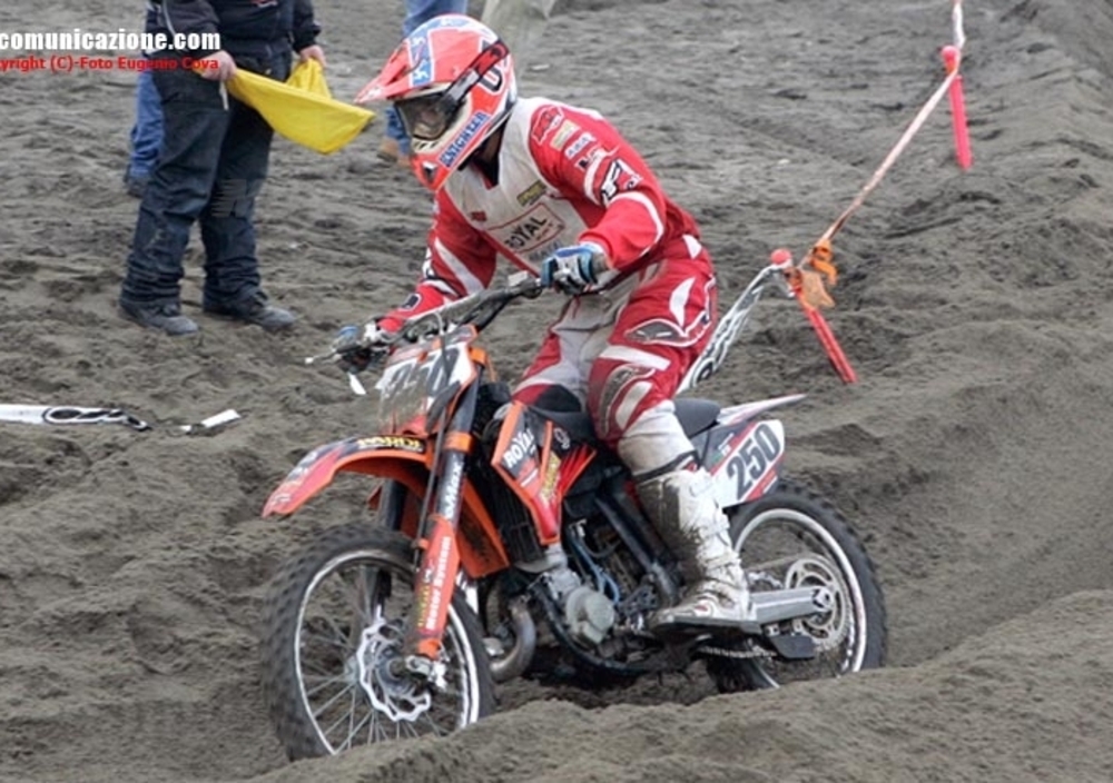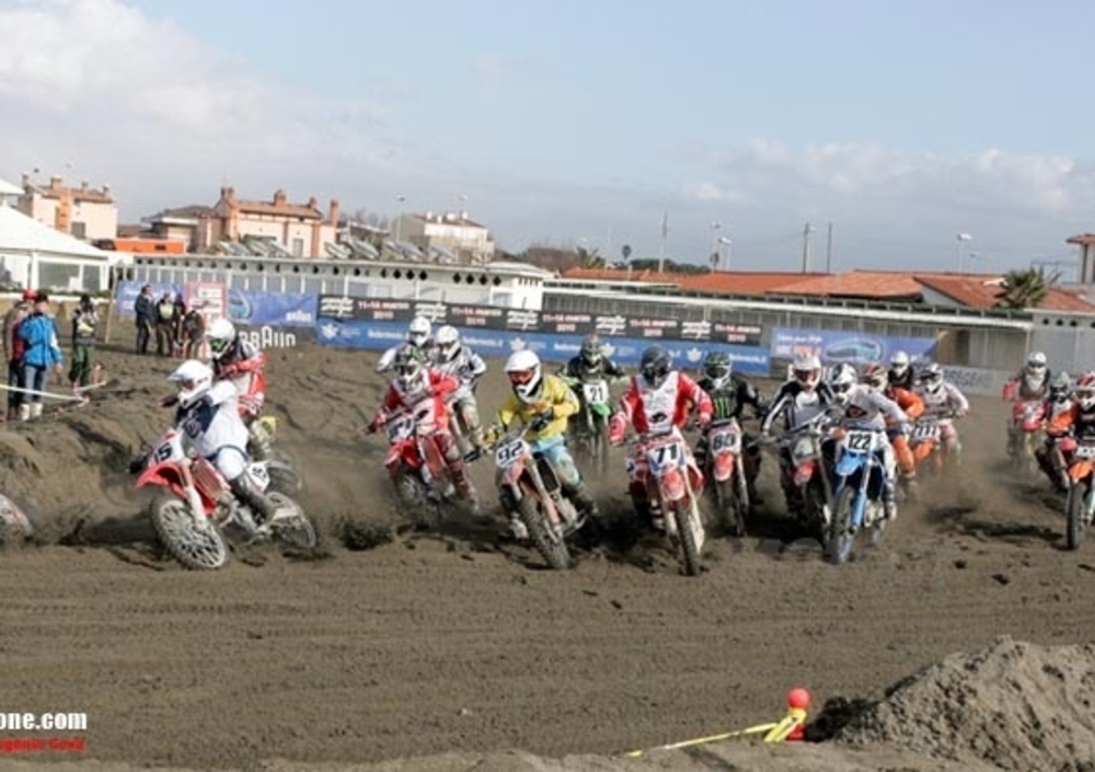 FREGENE (ROMA) – Dunque un nutrito numero di appassionati, circa 2000, ha assistito a questo primo evento dei neonati “Campionati Internazionali d’Italia su sabbia - Supermarecross”, anche se la giornata è risultata alquanto fredda e con qualche acquazzone che ha messo a dura prova piloti ed organizzazione. Proprio quest’ultima, con la esperta regia del Moto Club Milani, ha fatto in modo che tutto filasse per il giusto verso e anche se la giornata si è conclusa con un podio quasi al buio, tutti i partecipanti hanno acclamato l’ottimo percorso predisposto proprio dai responsabili del sodalizio romano.