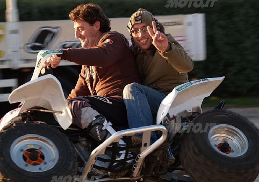 Si gira da solo il ginocchio e lo rimette a posto, ma ha tutti i legamenti crociati rotti. Quando Biaggi e Capirossi corsero con una mano fratturata tutti gridarono al miracolo e Anna Falchi pianse in diretta in televisione.