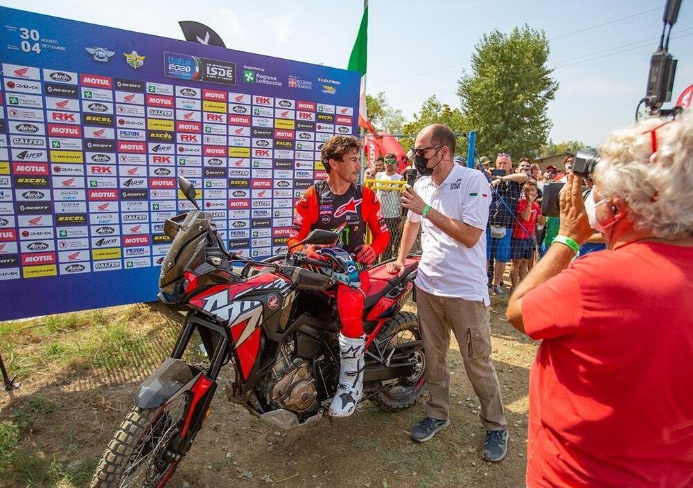 l’Italia dell'enduro trionfa sia nel World Trophy che nel Junior Tophy . Una festa che per tutti gli appassionati di questo sport che aspettavano l'oro dal 2005. Alle celebrazioni si è unito anche un ospite d'eccezione: Joan Barreda. Il fuoriclasse del Team Honda HRC Rally è salito in sella all’Africa Twin 2022 per la prima apparizione in pubblico della maxienduro con le nuove livree.