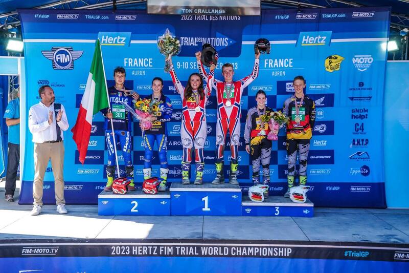 Ancora più equilibrato il Trial delle Nazioni femminile. La nostra squadra, dall'età media molto giovane, è stata in lotta per il podio per tutta la gara. Gran Bretagna e Spagna sono salite sui primi due gradini, mentre per l'ultimo è stata una sfida tra Norvegia, Francia e Italia. Lo hanno conquistato le nord europee. Al termine della prima tornata la migliore di queste tre squadre era quella transalpina con 18 punti, seguita dai 19 dell'Italia e dai 20 della Norvegia. Nel secondo giro, l'undicesima e la quattordicesima sono state le Zone decisive. Complessivamente, un'esperienza positiva per Andrea Sofia Rabino (Beta), Alessia Bacchetta (GasGas) e Martina Gallieni (Scorpa) che hanno chiuso con 36 penalità. Solo 3 in più rispetto alla Norvegia e una più della Francia.