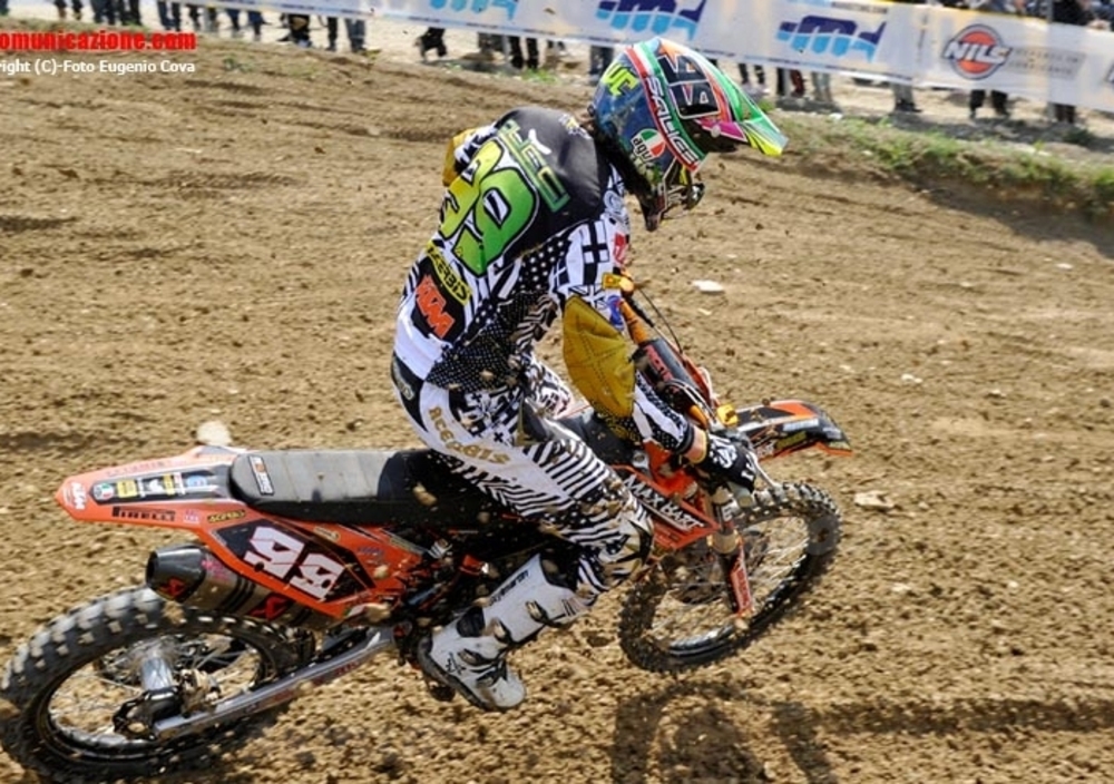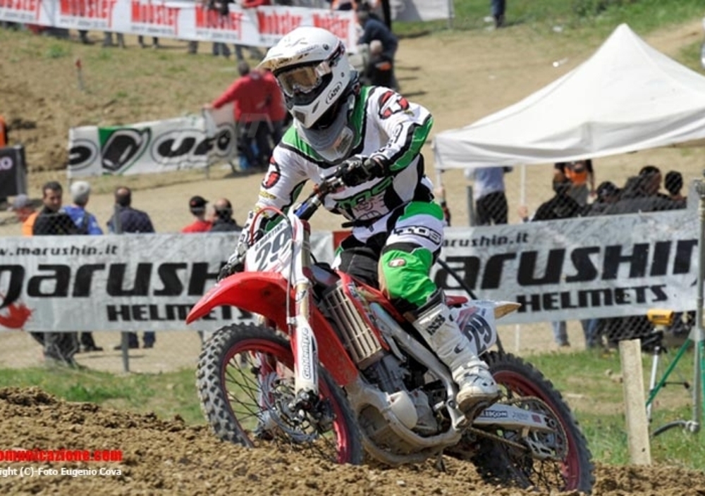 Due diversi vincitori nella MX2 con un Michael Mercandino (Honda-PVD Racing) stratosferico in gara 1 quando, attardato, ha raggiunto il battistrada Martini per poi involarsi verso la vittoria. La frazione conclusiva lo ha visto però protagonista in negativo con una caduta subito nelle prime battute. Ne ha approfittato Gianluca Martini (Honda-A Team) che da subito ha preso le redini della corsa mantenendo il primato sino alla fine, anche se ha dovuto stringere i denti per un polso dolorante che ha battuto nel corso del warm-up. Buona prestazione anche per il rientrante Stefano Pezzuto (KTM-Cabutti Team), due volte terzo, che con questo risultato si ritrova in vetta alla Under 21. Quarto è giunto Mercandino e quinto Cervellin. Questo per quanto riguarda l’assoluta di giornata. Del vincitore della Under 21 è scontata quella di Dawid Ciucci che si porta con una sola gara in terza posizione nella classifica provvisoria di categoria, mentre nella Over 21 si è imposto Nicola Dolce.