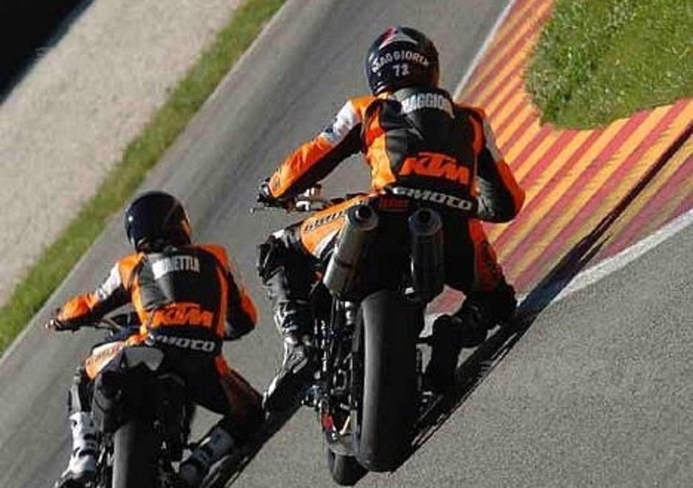 Il circuito internazionale del Mugello ha accolto sotto un cocente sole la quarta e penultima prova del Trofeo Super Duke. Ventinove i piloti al via, segno del crescente gradimento degli appassionati nei confronti di una formula avvincente e di una moto emozionante e facile da gestire come la KTM 990 Super Duke. La pole position di sabato è firmata da Andrea Padovani davanti a Margiotta e Castagnoli, i tempi sono molto buoni, le velocità in fondo al rettilineo superano addirittura i 240 km/h.