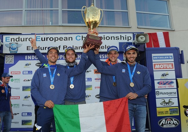 Un altro grande risultato per la Maglia Azzurra. A Kielce, in Polonia, l'Italia ha conquistato il Campionato Europeo Enduro per Nazioni, replicando il primo posto ottenuto nel 2017. La competizione, iniziata venerdì e terminata oggi, ha visto i piloti sfidarsi nelle prime due giornate di Enduro tradizionale e nella finale di cross odierna. A rappresentare la nostra nazionale sono stati Alessandro Battig, Lorenzo Macoritto, Maurizio Micheluz e Claudio Spanu guidati dal Commissario Tecnico FMI, Cristian Rossi, e dal Tecnico FMI Alex Zanni.