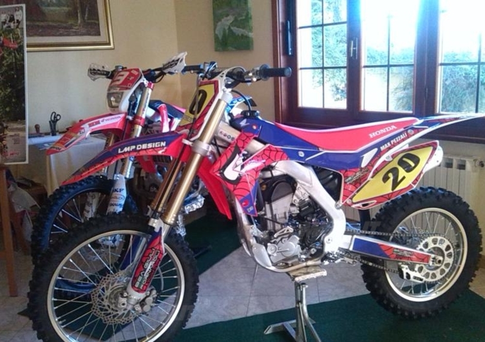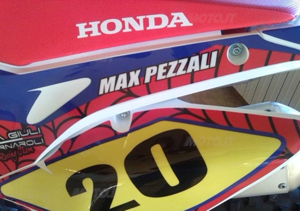 A Max Spezzali è stata dedicata una specialissima Honda CRF250R 2014, colorata con la livrea dell'Uomo Ragno. Trovate le immagini nella gallery sulla destra. Presente anche in sala la Honda numero 9 di Alex Salvini.