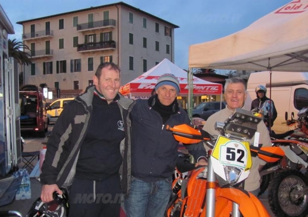 L’isola è sempre stata anche terra di grandi piloti nomi come Leonardo Conti, Fabio Pierini, Stefano Turini Luca Brandi che a cinquant’anni gira per l’Europa alla ricerca delle estreme più toste e per finire con Stefano Danesi “Stecca” sempre velocissimo nell’Enduro e negli ultimi anni anche nei Rally. Nomi che hanno ben rappresentato l’Isola a livello regionale e nazionale. Il personaggio che in questi ultimi anni si è dato più da fare nel Motorally è sicuramente Claudio Mameli. Pilota, manager e meccanico del suo Team Slauto, coadiuvato dal fedelissimo Andrea Bellini oltre a partecipare in prima persona spinge e porta alle gare numerosi piloti facendoli correre con le sue Fantic. In questa occasione la sua vittoria nella 125 4t è stata nettissima nonostante gli over 50 ed una condizione sempre sacrificata al lavoro nella sua officina a Marina di Campo. Grande anche la soddisfazione di aver portato alla vittoria la sua nuova Fantic con l’iniezione elettronica. Sul piccolo 125 4t, Claudio ha montato un corpo farfallato con tanto di adeguato air-box, centralina ed un curioso sensore sulla ruota anteriore. Con l’innovativo tipo di alimentazione la Fantic ha funzionato perfettamente con un motore prontissimo alla risposta del gas e molto più lineare nell’erogazione. Alla fine quando sul podio è stato premiato, anche come miglior pilota elbano l’ovazione è stata generale.