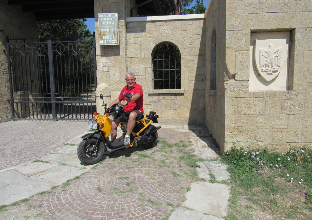 Giorgio Macari è una delle colonne dell’organizzazione della RMG. Il suo compito è visionare i percorsi e controllare gli eventuali punti critici. Un importante pedina sul piano della sicurezza. Il Sabato mattina ci ha portato alla scoperta del percorso Predappio - Rocca delle Caminate, teatro qualche tempo fadi una famosa gara in salita. Alla sommità la famosa Rocca residenza estiva , sempre del Nostro. Il panorama è mozzafiato su gran parte della Costa Romagnola.