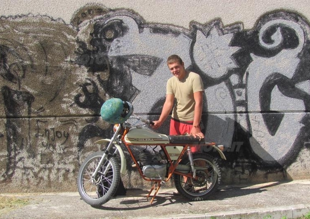 Visto e fotografato subito un must degli anni 70’: un Gilera 50 5V Trail che a quarant’anni di distanza funzionava ancora perfettamente nelle mani di un giovane collaboratore di Pasqualone.