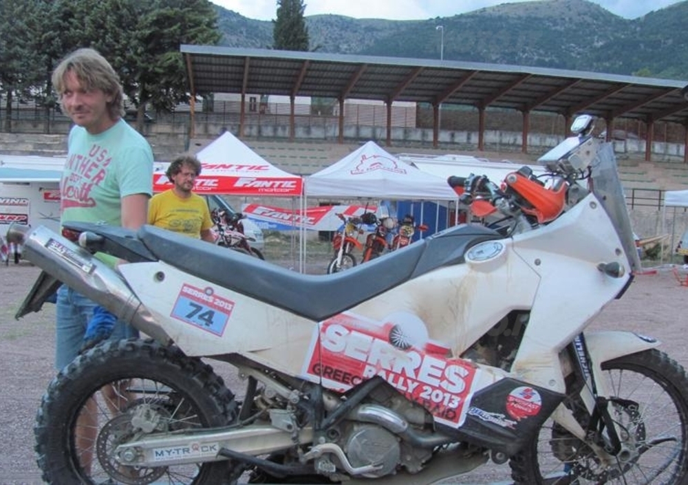 Frencesco Catanese è rimasto senza moto all’ultimo minuto. Il suo KTM è partito per la Turchia in anticipo dove l’eclettico pilota bolognese sarà impegnato nel prossimo Rally dell’Anatolia. Solo grazie alla disponibilità del “collega”, in tutti i sensi, Alessio Corradini è riuscito a partecipare alla gara. Alessio infatti gli messo a disposizione il suo 990 reduce dal Serres in Grecia.