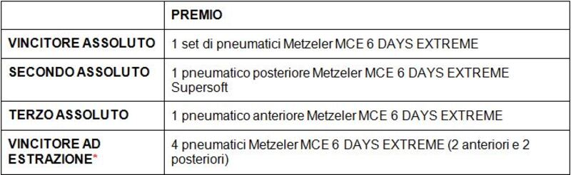 *vincitore ad estrazione tra tutti i partecipanti gommati Metzeler, esclusi i primi 3 classificati assoluti