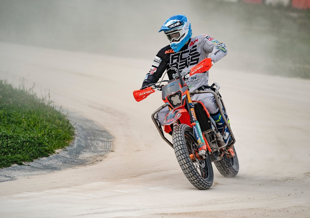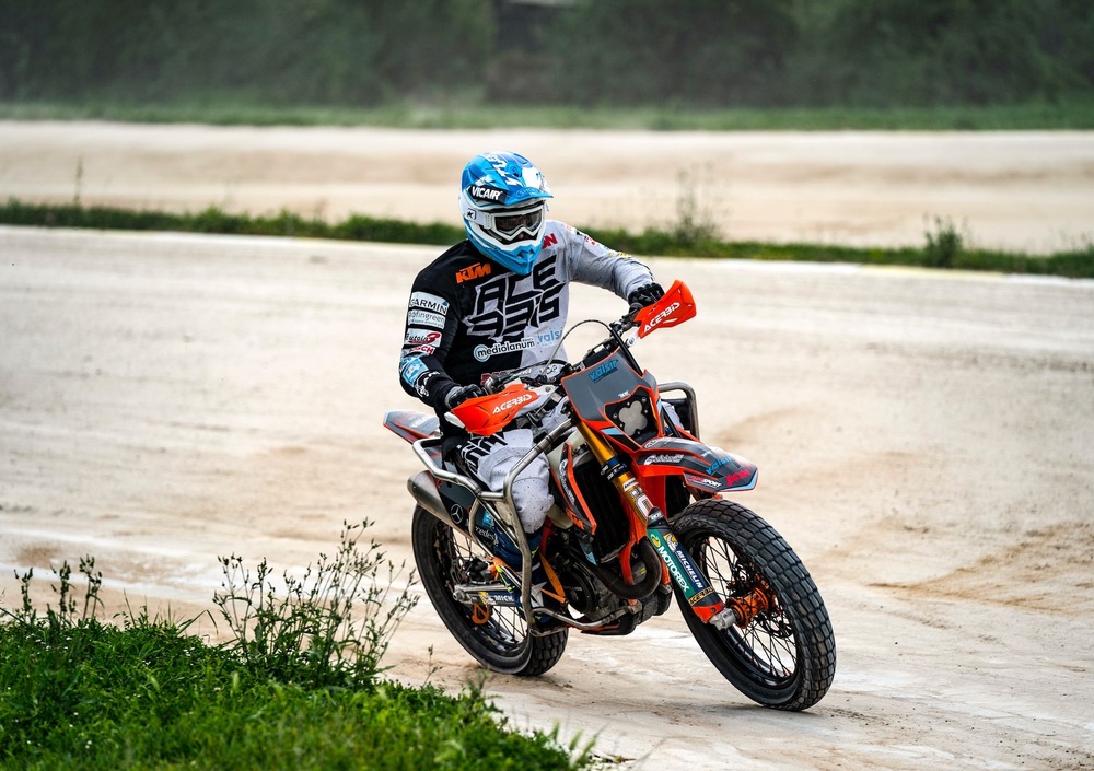 Cos'è una prova all'americana? Una gara a eliminazione, un po' come si faceva da ragazzini giocando a ping-pong: diverse manche di due giri in cui, a ogni giro, vengono eliminati gli ultimi due piloti. Fino alla finale, di tre giri, che si corre in quattro. A Nicola, che si era preparato scrupolosamente, purtroppo è andata male, finendo eliminato al primo turno. Ma la pista del Ranch è una bestia del tutto particolare: serve padronanza del mezzo ma anche un'esperienza specifica che Nicola, giocoforza, non poteva avere.