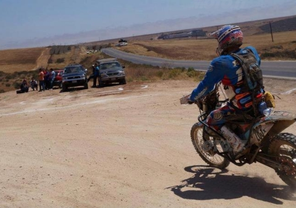 Io ho corso principalmente di notte percorrendo 300 miglia (le prime 150 e le ultime 150). Sono caduto un paio di volte ma niente di grave. Al rientro sulle montagne attorno ad Ensenada e sotto una pioggia battente si è rotto il cavo del freno posteriore ed ho dovuto correre usando solo l'anteriore, cosa veramente difficile perché io per dare direzione e trazione alla moto uso principalmente il posteriore!