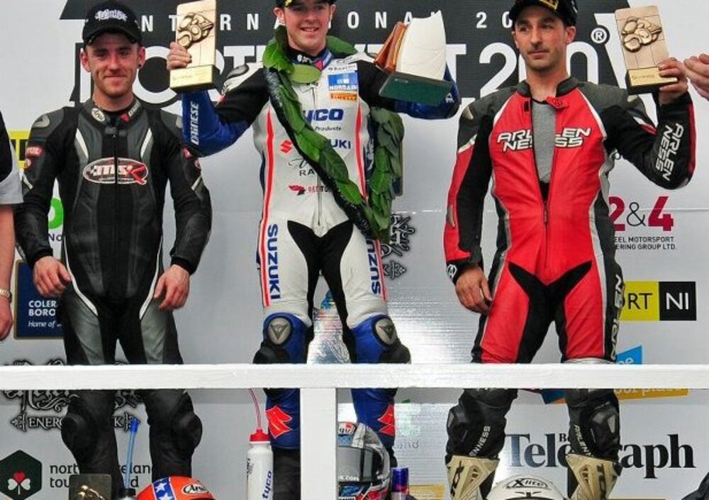 Fino all’ultimo giro la seconda posizione era a portata di mano. La bagarre tra Lee Johnston ( Ducati 1199 Panigale ufficiale BSB), Cameron Donald, Ryan Farquhar, e il bergamasco è stata uno spettacolo che, viste le condizioni atmosferiche, le velocità e i pericoli di una gara stradale, verrebbe da definire eroico.