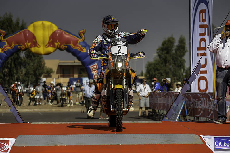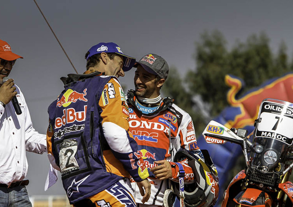 Marrakech, 10 Ottobre. Vedere correre, e vincere, Marc Coma, è un autentico spettacolo, un’esperienza. Nel suo modo di guidare, assolutamente inconfondibile, c’è l’espressione del talento e del lavoro, e la sobrietà della consapevolezza. Il Pilota dei Rally-Raid è speciale, perché il frutto della sua bravura non lo vedi subito, mentre passa, ma 500 chilometri più avanti, quando la tappa è finita. Per questo il Pilota di Rally-Raid bravo non è mai spettacolare, mai “esagerato”, ma sempre redditizio. Quando il Pilota è bravo, contiene gli entusiasmi anche quando taglia il traguardo e vince. Sorride, condividendo la felicità del momento magico e la soddisfazione dei mille momenti “buoni” della giornata, del Rally, del Mondiale appena vinti.