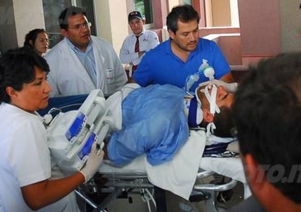 Il motociclista italiano ha subito una lesione al polmone e un edema cerebrale, ed è stato portato nel reparto di terapia intensiva dell'ospedale nella cittadina di Catama (1.500 km a nord di Santiago), da dove qualche ora dopo è stato trasportato in un aereo nell'Ospedale 'Mutual de Seguridad' della capitale cilena.