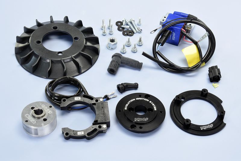 Polini presenta il kit accensione digitale a rotore interno per VESPA 50 Special e 125 Primavera ET3 cono 20. L’accensione è completa di supporto statore, statore, rotore, ventola e bobina completa di CDI, in cui è già inserita la mappa di accensione dell’anticipo elettronico. Il set up risulta molto semplice, consentendo la regolazione dell’anticipo meccanicamente. La nuova accensione a rotore interno e anticipo variabile si può utilizzare su motori che firano a 20.000 giri. Il kit Polini è il più avanzato concentrato di tecnologia elettronica progettata per le competizioni in pista. L’impianto elettrico dello scooter viene escluso. Una tabella d’anticipo per il corretto set-up è disponibile all’interno del kit.