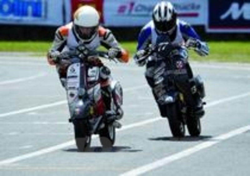 Partendo dalla pole position, Filippo Corsi prende subito il comando in gara-1 seguito da Tiraferri e da un grintosissimo Nico Morelli, che accuserà però dei problemi che lo faranno scivolare nelle retrovie. Se Corsi e Tiraferri sviluppano a un personalissimo duello, alle loro spalle si mettono in evidenza Luca Zani e Carlo Gurrieri; quest’ultimo in un piccolo contatto con Zani perde però posizioni importanti. In testa al gruppo Tiraferri e Corsi viaggiano sempre a spalla a spalla con grandi staccate a ogni curva. Alle loro spalle si mette in luce anche Domenico Passanisi, confermando così la propria crescita a ogni appuntamento della Polini Italian Cup. L’ultimo giro regala un brivido in staccata; Tiraferri tocca il posteriore di Corsi che guadagna così qualche metro utile da conservare la prima posizione fino all’arrivo. Terzo termina Passanisi e quarto Castellini, autore di una bella rimonta. In gara-2 è sempre Corsi ad assumere il comando impostando la prima curva davanti al compagno Tiraferri. I due ufficiali del Team Polini Scooter duellano con continui cambi posizioni sino al quinto giro quando Tiraferri va oltre il limite e sbaglia, scivolando nella curva che precede il rettilineo di partenza. Il “Tira” perde così la seconda posizione in favore del compagno di squadra Nicolò Castellini che all’arrivo precede Zani.