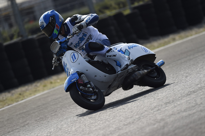 In Gara-1 è Nazzereno Lumina a partire con la pole per gli 8 giri previsti. L’ufficiale del Team Polini Scooter assistito dal tecnico Vespa Mario La Greca, scatta al comando seguito a pochi decimi da Camera. Al primo giro transitano nell’ordine sul traguardo Lumina, Camera, Mauro Bigarella, Alberto “Cesta” Costa, Elia Cunti, Larcher e Piacentini. Da segnalare un errore di Larcher che dalla terza piazza, lo fa retrocedere in undicesima posizione. Lumina allunga sugli inseguitori sempre guidati da Camera. Arrivo trionfale per Lumina che precede Camera, Cunti, Bigarella, Piacentini e Costa. Sono sei i giri di Gara-2 con Lumina che scatta nuovamente inseguito seguito da Camera e Cunti. Il primo giro si conclude con Lumina al comando inseguito a poco meno di 3 secondi da Cunti e a oltre 4 da Camera. Al secondo giro, Leaso riesce a passare terzo insidiando Cunti. A metà gara lo svizzero Ahron Larcher passa secondo con un bel sorpasso su Leaso e Cunti. Piacentini è quinto. Sul traguardo transita primo Lumina che firma così una bella doppietta. Dietro, Larcher, Leaso, Piacentini e Cunti. Il podio di giornata premia Lumina, Camera, Cunti, Larcher, Leaso.