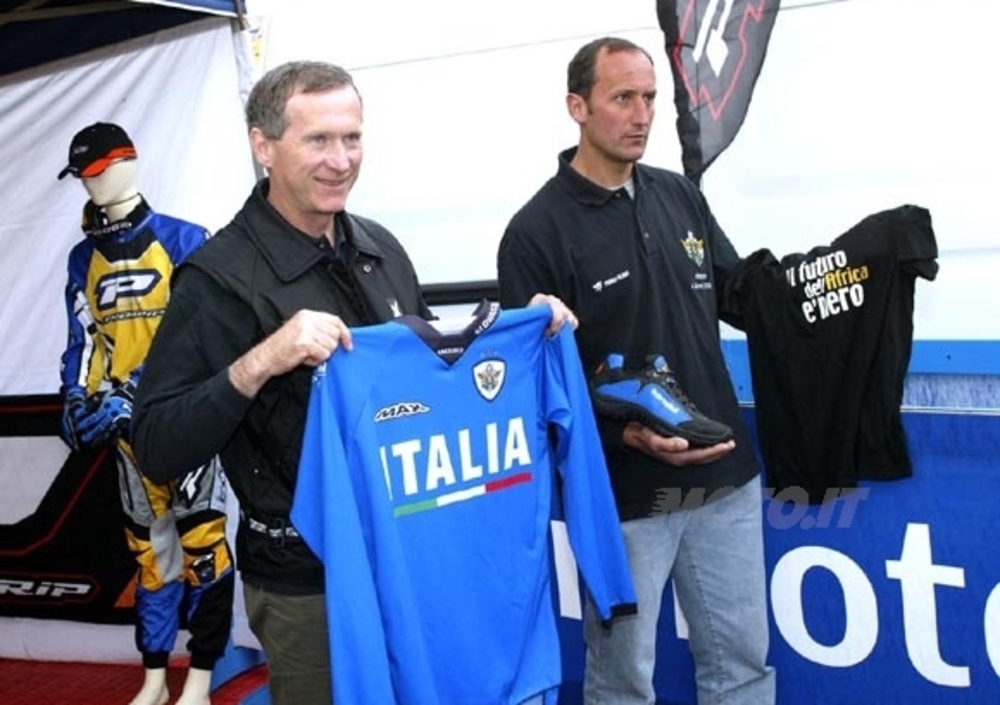 sopra lo scudetto della Federazione Motociclistica Italiana. "L'Italia dell'enduro ha vinto tanto" - spiega Franco Gualdi - "la stella oro più grande sta a significare le dieci vittorie conquistate, mentre le due più piccole argento altre due affermazioni che proiettano la nazionale a quota dodici vittorie totali nella storia di questo sport".