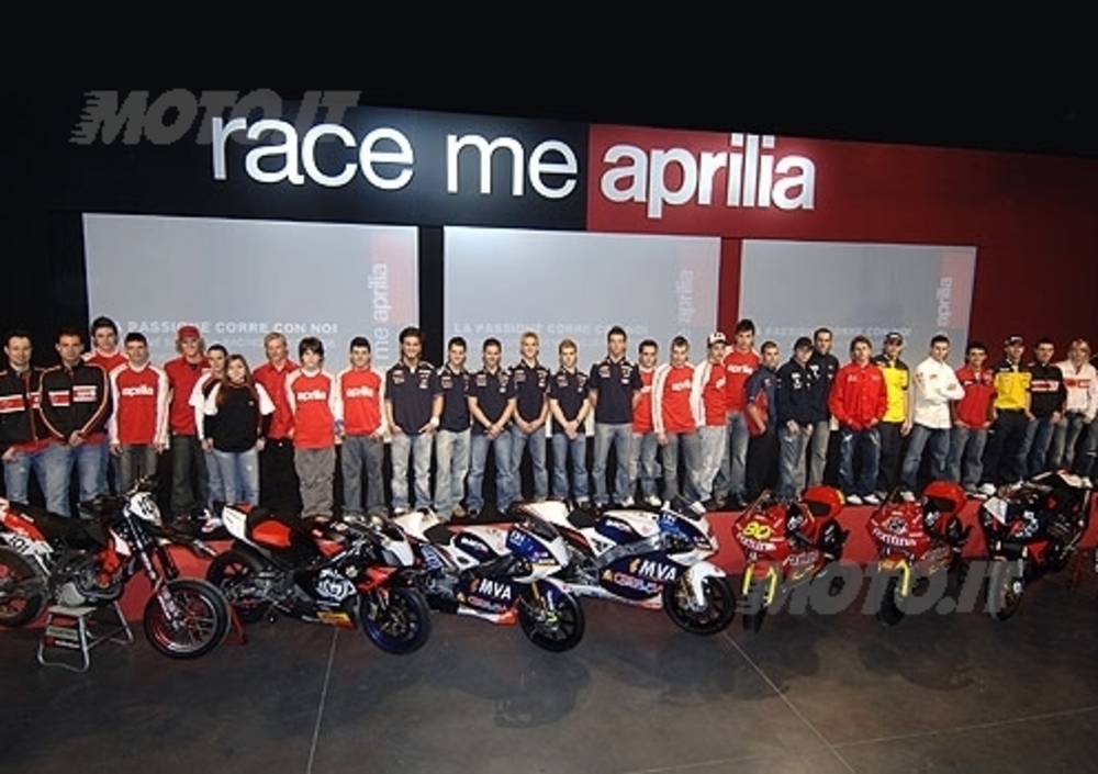 Presentati a Milano i 60 piloti Aprilia che rappresenteranno la casa veneta in Italia e nel mondo.