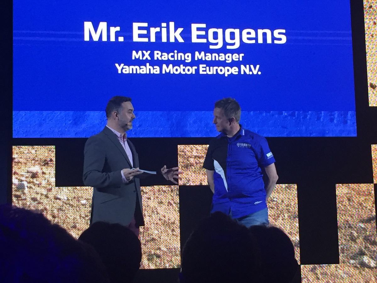 Sono i team offroad i primi a salire sul palco. Alex Kowalski, manager Rally ed Enduro ha fatto il punto sulla Dakar appena conclusa. Poi è stato il momento dell'MX con Erik Eggens, MX Racing Manager che ha introdotto i team MXGP, MX2, EMX e WMX. Febvre e van Horebeek, affiancati da Michele Rinaldi sono la punta di diamente del campionato Motocross e - come ha sottolineato Eggens - «L'obbiettivo è vincere».