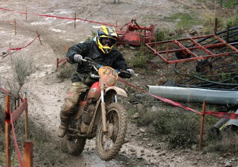Il grosso della truppa, parliamo dei piloti, è sempre lo stesso: dal sempiterno Gritti (11° assoluto), la “leggenda” di questo mondo, fino all’ultimo appassionato. Passando per Caccia (42°), Belussi (40°), il padrone di casa, Viale su una bellissima Accossato. Chicco Muraglia, simbolo dell’enduro da quelle parti. Un mondo di facce solcate dagli anni, inossidabili per la passione, accanto a moto belle, meno belle, piu’ o meno esclusive, ma sicuramente fresche e a punto, pronte a una nuova stagione di gare. E subito finite nella morsa di un fango che finisce per “limare” in fretta le parti vitali e lasciare subito il segno.