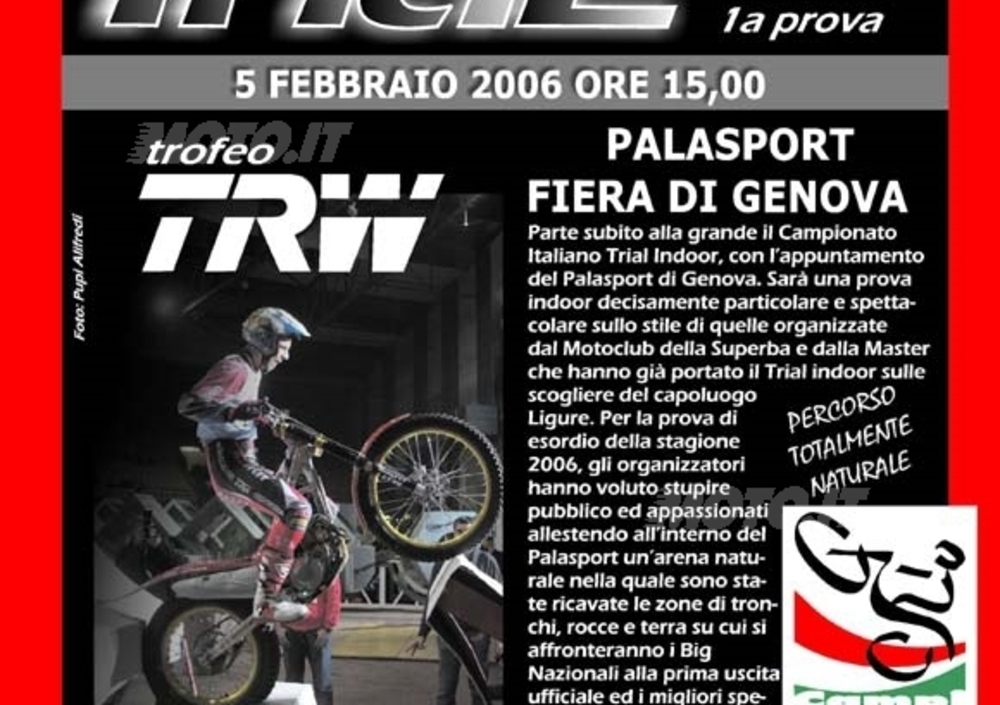Parte subito alla grande il Campionato Italiano Trial Indoor, Trofeo TRW, con l’appuntamento del Palasport di Genova del 5 Febbraio.