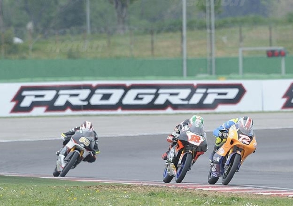 Terzo il compagno di Moretti, Marco Ravaioli che ha vinto la volata a tre con Gennaro Sabatino (Aprilia - Junior G.P. Racing Dream) e Davide Stirpe (Honda - CRP).