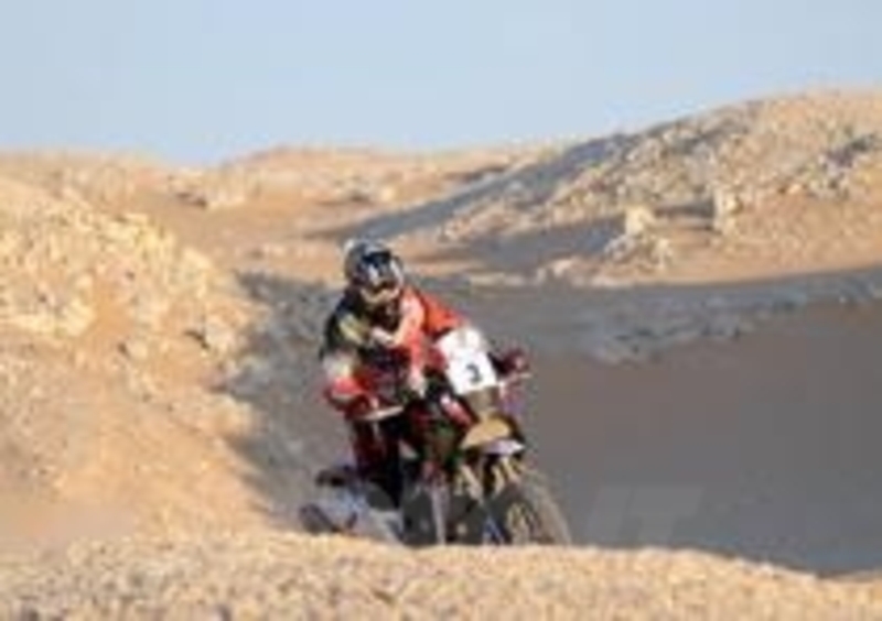 Quarta tappa, la più bella dell’edizione 2012. “Così hanno detto - pensa Pal Anders Ullevalseter – vediamo se è vero!”. Ma alle 06:45, la speciale era iniziata da appena un quarto d’ora, il cambio della sua KTM si blocca. È impossibile pensare di coprire le due sezioni della lunga Speciale, 215 + 248 chilometri, con una marcia soltanto. Così il norvegese, quarto in classifica generale fino alla vigilia, si ritira e torna al bivacco, dove si affretta a cercare un mezzo per andare a recuperare la moto. Domani comunque Ullevalseter partirà. Questa la dinamica del colpo di scena di prima mattina, il primo di una lunga giornata. Non molto più avanti, infatti, Jordi Viladoms sparisce dai monitor del Posto di Controllo di Gara (il PC Course, in quel gergo che si inchina agli inventori dei Rally, i francesi). In realtà si tratta di un guasto all’Iritrack, ma è un fatto che Viladoms, dolorante alle costole in conseguenza della caduta del giorno precedente, fa fatica a forzare, e procede molto al di sotto delle sue possibilità.