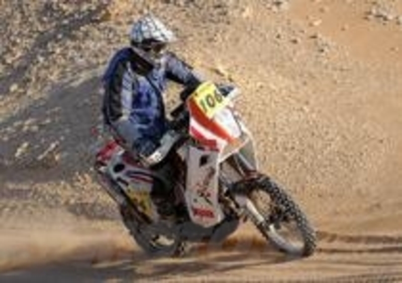 individuata dal “Labirinto”, un dedalo di roccia, terra e sabbia non lontano da Mut. Franco Picco ha portato, come sempre, una nidiata di pulcini a fare esperienza in Egitto. Sono Carlo Zuffetti, Paolo Sabbatucci, Carlo Seminara, Franco Panigalli, Alessandro Evilio e Vincenzo Tracanzan. In gara anche il meccanico ed amico, l’egiziano Amin Shafai. Anche per uno dei più grandi miti dei Rally africani è un bel da fare. Di solito Franco sta in mezzo al gruppo, posizione da dove riesce a controllare agevolmente l’intera “muta”. Facile davanti, basta un segnale di polvere, un po’ meno alle spalle, perché costringe a girarsi. In prossimità del Labirinto, salendo sulla “parete” di una duna, Picco si gira per un controllo, ma quando riporta lo sguardo in avanti sta volando oltre la cresta di sabbia. Da buon ex crossista senza paura è preparato all’impatto, ma quando atterra la sabbia è molto molle, la moto affonda e Franco vola ancora, questa volta oltre il manubrio, per poi atterrare di faccia. (Guarda il video della caduta di Picco alla Dakar). Gran botta e perdita di conoscenza, così il suo compagno accende immediatamente il segnalatore di emergenza. Soccorso dai medici Franco fa un primo volo in elicottero verso la clinica mobile al bivacco. Niente di serio, assicurano i medici, ma meglio fare una tac per togliersi ogni dubbio, così Franco riparte in volo, a bordo di uno dei colossali, antichi Chinook, gli elicotteri che in Egitto sono quasi un’icona. Un’ultima cosa. Oggi, 4 ottobre, è il compleanno di Franco Picco. Sono molti anni che il Campione lo festeggia in Egitto, ma non era mai successo così, che lo festeggiasse con il botto. Auguri Franco.