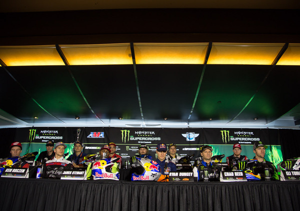D’accordo con la Redazione questa settimana abbiamo fatto slittare di un paio di giorni il mio solito appuntamento del mercoledì, ma per un buon motivo: oggi (qui è ancora giovedì) c’era la conferenza stampa di apertura del campionato AMA Supercross 2016 e non potevamo assolutamente perdere l’occasione per un commento quasi in diretta, live from Anaheim California.